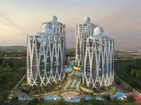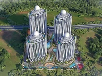 The project has 2 phases and 4 residential blocks in a total plot of 20,000 m². Along with a chic architectural design, the mega-compound offers various rich amenities for residents. These include an indoor swimming pool, large landscapes, a pond, a Turkish bath, fitness, steam rooms, a sauna, a playground, indoor parking, gazebos, 24/7 security, volleyball and basketball courts, hobby spaces, cafes, and restaurants.