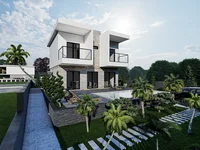 Built on a 330 m² land area the chic detached villa is located in Güzelçamlı where most of the home types are villas or low-rise apartments. The region is famous for its thermal waters and woods. The villas have a private pool, garden, and parking lot.