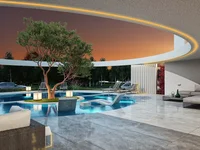 Dans la décoration intérieure, la villa dispose de chambres, salle de bains privative, un salon haut plafond, un autre salon avec un deuxième grand espace d'utilisation au rez-de-chaussée, une cuisine ouverte, cellier, buanderie, espace dépendance, cinéma, zones sportives, bain turc, sauna et sections de hammam. L'élégante villa est équipée de systèmes de chauffage au sol et de refroidissement VRF, d'un système de gestion de maison intelligent, d'armatures de marque de qualité, de systèmes de menuiserie en aluminium de marque Linea Rossa et de fenêtres hautes, de revêtements de sol en bois et en céramique de qualité, d'armoires de cuisine laquées et de portes intérieures, de systèmes de volets électroniques, d'une porte extérieure en acier spécialement produite avec un écart élevé.