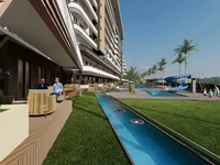 La conception du complexe à Antalya est située sur une zone de 10 720 M ².. 5 km du monde - les célèbres hôtels Lara / Kunda, à 1 km de l'aéroport d'Antalya, le centre touristique, à 1 km des écoles privées, à 4,5 km de centres commerciaux tels que le centre commercial d'Antalya, Agora, Ikea. > Un bâtiment avec une longueur de 195 m et 12 étages, inspiré par une doublure de croisière créée par son créateur, est nominé pour le titre du meilleur projet de la région avec son architecture inhabituelle. , qui comprend 174 appartements, dont 1 bureau: