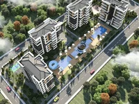 Le nouveau complexe résidentiel moderne au stade de la construction dans la région d'Altyntash, Antalya.