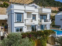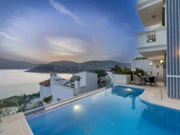 Située dans la prestigieuse région de Kömürlük, cette élégante villa offre une vue panoramique sur la baie de Kalkan et les couchers de soleil uniques de la Méditerranée. Son design bien pensé met l'accent sur le confort avec une salle de bains privative dans chaque chambre. La villa comprend également une cuisine moderne, un salon spacieux et une vue ininterrompue sur la mer depuis ses balcons et terrasses. Un salon supplémentaire sur le toit peut servir de chambre supplémentaire ou de bureau à domicile. Toutes les chambres et le salon sont climatisées, et les fenêtres sont équipées d'une isolation thermique double vitrage.
