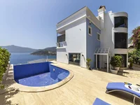 La chambre principale offre une vue imprenable sur la mer à travers ses grandes fenêtres, tandis que le studio de grenier offre un espace inspirant qui s'ouvre sur une terrasse spacieuse, idéale pour profiter des couchers de soleil et des lumières de la ville. La villa dispose d'un parking privé et d'une infrastructure technique complète pour un séjour confortable toute l'année. Avec son emplacement privilégié à proximité des plages et de la charmante vieille ville de Kalkan, cette maison offre une excellente opportunité pour la vie de vacances et l'investissement.