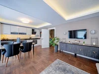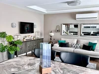 À l'intérieur: Rénovation lumineuse dans un style moderne, un salon spacieux avec une cuisine d'angle, deux chambres, deux salles de bains. Au niveau supérieur - accès à une grande terrasse donnant sur la ville et la mer. Tous les meubles et appareils sont inclus dans le prix, l'appartement est prêt à vivre.