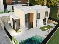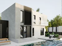 La chambre principale à l'étage supérieur comprend une salle de bains privative et un dressing, offrant confort et fonctionnalité. Les chambres et salles de bains supplémentaires offrent une facilité d'utilisation et d'intimité. La cuisine ouverte et le salon lumineux créent un design harmonieux avec des lignes modernes et des meubles laqués intégrés, tandis que les plafonds à double hauteur permettent à la lumière naturelle de remplir l'intérieur toute la journée. Les intérieurs sont meublés avec des unités laquées sur mesure, y compris des armoires, des armoires de dressing, une buanderie et une cuisine entièrement équipée. Appuyées par un système de chauffage par le sol avec une pompe à chaleur et la climatisation par onduleur dans chaque chambre, les villas offrent des conditions de vie idéales pendant toutes les saisons.