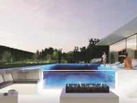 The project offers expansive living spaces. The detached villas for sale include a living room, entrance hall, open-plan kitchen with optional closure, five bedrooms, six bathrooms (including a guest bathroom), a dressing room, pool, 270 m² garden terrace, cinema room, wine cellar, technical room, storage, jacuzzi, and sauna.