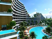 We present to you luxury apartments in a new premium complex. The project is designed in the shape of a wave - a perfect combination with the Mediterranean Sea, whose sandy beaches are only 5 km away. All apartments in this luxury complex face south. The internal infrastructure meets the highest requirements. The residential complex occupies an area of 16,250 m², consists of 12 floors and 227 apartments. On site there is: ● 6,000 m² covered parking ● 1,440 m² total area of outdoor pools ● 330 m² of recreation area, which includes: Fitness room - Sauna - Steam room - Shower Charcot ● 550 m² children's playground ● 3 Lobby - reception ● Generators ● Security ● Video surveillance 24/7 The price includes full finishing, built-in kitchen furniture with a set of household appliances, underfloor heating, air conditioning, wardrobes and fully equipped bathrooms. Payment method: 50% down payment, 50% monthly and quarterly interest-free installment plan for 18 months.