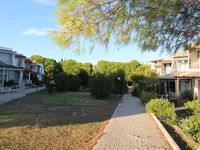 The villa has a total land share of 177 m² and 90 m² of net usable space. The complex offers extensive green areas, social facilities, and parking. Additionally, the semi-detached villa provides a spacious outdoor with its front garden and outdoor seating areas.