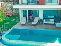 Villas: 3 et 4 chambres, 3 et 4 salles de bains, 1 salle de bains, salon, cuisine, balcons, terrasses donnant sur la mer et les îles.