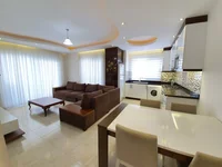 Lovely apartment 2 + 1, 110 sqm, in a very beautiful residential complex. Kitchen combined with ( American layout ) + 2 bedrooms. The kitchen has a built-in kitchen set. Two bathrooms, one guest room, the second in the bedroom, are fully equipped. the apartment is fully furnished, with appliances. The apartment is ready for settlement.