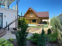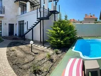 The house is lined with natural stone, panoramic glazing, roofing from tiles. Pool. Heating double-circuit boiler.