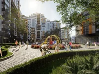 The yard is closed and under round-the-clock security. The territory is closed to cars, equipped with children's and sports grounds, recreation areas, bicycle parking, a place for storing prams and containers for sorting garbage.