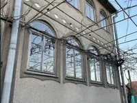 Dans la cour il y a un puits, une salle de bains et une douche d'été. Voilà le trottoir. Une grande rue asphaltée. Près de l'arrêt de bus, boutiques, marché, école, maternelle. Il est 20 minutes du centre-ville.