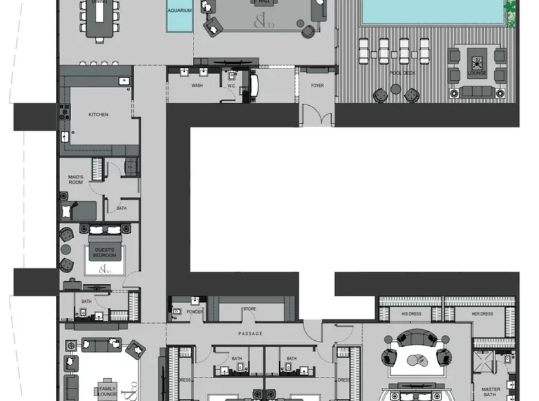 Enjoy the ultimate luxury in this 6-bedroom penthouse with stunning views of the Dubai Skyline and the Burj Khalifa. The Fleur de Jardin Sky Mansion offers spacious interiors and panoramic vistas from every angle.
