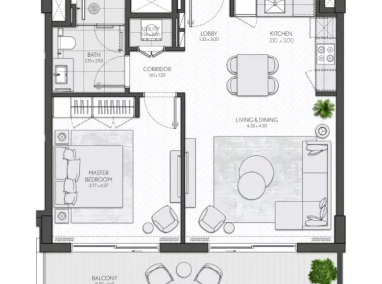 Inside, the residences boast contemporary designs with luxurious finishes that exude authenticity and sophistication, reflecting a commitment to refined elegance. These elegant apartments offer spacious interiors with premium fixtures, complemented by floor-to-ceiling glass panels that provide unobstructed views of the Dubai skyline. The color palette emphasizes a warm sense of modernity and refinement, harmonizing beautifully with the linear architecture of the buildings.