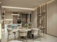 La décoration utilise de la pierre naturelle, des matériaux de haute qualité et des proportions soigneusement calibrées, formant une atmosphère calme et équilibrée des intérieurs. Les aménagements sont conçus pour un éclairage naturel maximal et la commodité de la vie quotidienne, ce qui rend le projet attrayant pour ceux qui considèrent les appartements aux EAU en mettant l'accent sur la qualité de l'environnement.
