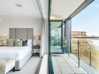 The townhouse is arranged over four floors boasting three fabulous balconies at three different levels each one overlooking the River Thames. The townhouse benefits from a bespoke, high gloss ‘Macassar’ kitchen with fully integrated Miele appliances including wine cooler and a Crestron Home Automation System that controls the lighting, heating/air con and TV’s throughout the property.