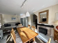 Au niveau inférieur il y a un salon lumineux avec un feu de cheminée et une terrasse ensoleillée avec une belle vue sur la piscine et les jardins. A cet étage il y a aussi la cuisine avec une terrasse utilitaire.
