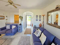 ***South Facing with Stunning Views*** This beautifully presented south-facing townhouse in the established urbanisation of Doña Pilar, Manilva, offers stunning sea and countryside views just five minutes from the coast and on the edge of Manilva Village. The spacious 3-bedroom, 2.5-bathroom home is situated in a peaceful setting and benefits from access to a communal pool and gardens. The entrance opens into a multi-level living area, flooded with natural light from several south-facing patio doors. The open layout creates a welcoming flow between the living room, dining area, and fully fitted kitchen. A guest WC and a handy storage cupboard are also located on this level. The current owners have enhanced the home with an upper terrace that enjoys panoramic views over the vineyards of Manilva and the Mediterranean Sea. Descending the elegant marble staircase leads to three generously sized bedrooms, with ample wardrobe storage. The master suite includes a dressing room and en-suite bathroom, while all bedrooms have direct access to a private lower terrace—a secluded suntrap perfect for enjoying the Andalusian climate. Offered fully furnished, its idyllic location, stunning views, and move-in ready condition, this property is a rare gem in the Manilva area. -OP8860719-