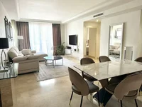 These bright 125 square metre apartments feature a living room, 2 bedrooms, 2 bathrooms and a fully equipped kitchen. A spacious and elegant living-dining room and the master bedroom open onto a terrace area. The kitchen is separate and bright, with a laundry area containing a washer/dryer, boiler and dishwasher. The second bedroom opens onto the outside garden area.