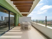 La terrasse spacieuse offre une vue panoramique sur la côte de Mijas, et sa disposition ouverte assure une luminosité optimale dans tous les espaces.