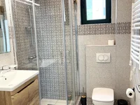 Appartement moderne meublé avec une magnifique vue panoramique sur la mer est à vendre. L'appartement est de 81 m2 et est situé au 3ème étage d'un immeuble moderne avec un ascenseur. L'appartement dispose de deux chambres et se compose d'un salon avec une cuisine et un coin repas, deux chambres spacieuses, un couloir, deux salles de bains et une terrasse avec vue panoramique sur la mer. La mer est à 12 minutes à pied. L'appartement est équipé de meubles de fabricants allemands et italiens, d'un filtre à eau potable (osmose inverse) et d'appareils électroménagers Bosch de haute qualité. Les documents sont en ordre, il n'y a ni charges ni restrictions.