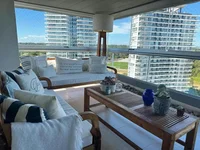 Spectacular penthouse apartment for sale with 260 square meters (2,800 square feet) of floor space on two levels with excellent views to the ocean and neighborhoods of Punta del Este. In great condition with a bright living/dining surrounded by windows and with passage to the spacious outdoor balcony. 4 spacious bedrooms, 5 bathrooms. Fireplace. Jacuzzi. The upper floor has an awesome lounge with barbecue and dining area plus outdoor balcony. 2 parking spaces, 3 storage boxes. Totally furnished and equipped. Ref: 2135