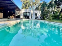 House for sale in Design Village, a beautiful private community in Punta Ballena a neighborhood located just to the west of Punta del Este. Design Village has an area of 140 hectares (over 300 acres) surrounded by natural beauty in the lee of the sierra and hosts a variety of amenities including security, maid service, gym, spa and a number of outdoor sport facilities. The house for sale is recently constructed on a lot of 1,020 sqm and with 300 sqm constructed area with spacious dimensions and 4 bedrooms and 4 bathrooms, the master bedroom with ensuite bathroom with jacuzzi and a large walk-in closet. The living/dining has a high-efficiency wood stove/fireplace and lots of glass to be at one with the landscape and adjoins a large covered wood deck featuring lounge area, dining area and barbecue beside a large heated swimming pool. The kitchen is large, modern and well equipped with top-notch appliances and adjoining pantry and laundry room. All the rooms are air conditioned. Heating in the winter is provided by the aforementioned wood stove which is ducted to the bedrooms as well as zoned electric radiant floor heating. The house is automated with smart devices that control video cameras, the irrigation system, comfort systems, lighting etc. Ref: 1837