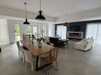House for sale in the private neighborhood Design Village in the Solanas neighborhood west of Punta del Este. Built employing traditional construction (reinforced concrete frame, brick fill, on slab) and nicely designed. Spacious and bright living room. Double pane windows throughout. Fireplace. Modern kitchen integrated into the living/dining space. 3 comfortably sized bedrooms with view to the garden. 3 bathrooms, the master ensuite. Air conditioned throughout. Lovely covered patio wtih barbecue. Double garage. Excellent amenities. Ref: 2132