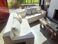 Lovely house for sale with 3 bedrooms all with ensuite bathrooms. Living/dining with fireplace surrounded by lots of glass to enjoy the outdoor views and illumination. Kitchen partially integrated into the kitchen with breakfast bar. Guest house complet with kitchenette, bedroom and bathroom. Garden with outdoor dining area and barbecue. Pool Ref: 2152