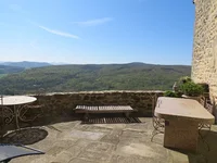 At the top of one of the most charming villages of Drome, the medieval castle has been restored with the utmost care. Ten rooms, including a living room of 80 m2, outbuildings. Courtyard, terrace, garden 1991 m2. View of the area from above.