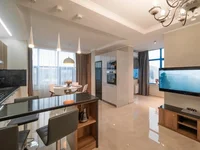 A unique completely furnished apartment is sold, located on the 30th floor in the house with a sea view and mountains.