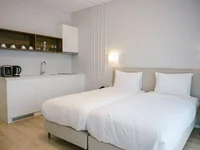 The best complex on the new boulevard. Five-star hotel quality. The studio is square-shaped, which creates more living space. Fully staffed. Oven, microwave. It is within walking distance of Metro City, casino and many restaurants. The complex itself has an impressive entrance area, outdoor pool, SPA, fitness, restaurant and bar. Breakfast and dinner are offered for an additional cost. For owners, discount. The complex has a high occupancy. It is also suitable for independent living.