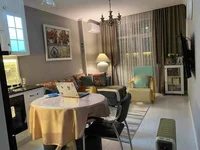 The apartment is equipped with modern furniture