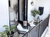 The apartment is located on a low 8th floor, overlooking the green hills and the sea.