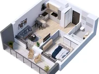 The apartment is sold with a design developed in 3D Max, with an optimized layout for future renovations.