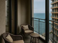 Apartment for sale in a white frame 1 + 1 with panoramic windows. 150 meters to the sea.