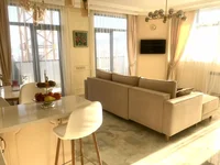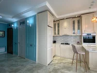 Premium quality designer renovation has been completed. The apartment has additional noise and waterproofing. The apartment is fully equipped with furniture and household appliances. The kitchen has built-in appliances, including a dishwasher and an oven.