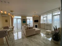 For sale is a spacious apartment with a unique layout and panoramic views of the sea and mountains.
