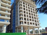 Studio for sale in an apartment hotel under construction in Mahinjauri. End of construction: end of 2026. The studio will be made in a white frame. View of the mountains towards the Botanical Garden. The Novotel Living complex includes all the necessary infrastructure of the first line, its beach, restaurant, panoramic rooftop bar, rooftop swimming pool, spa and fintes, shops, underground parking, recreation areas in the yard. Full management from the global brand.