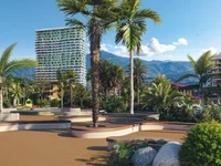 Large-scale hotel and residential complex Dreamland Oasis Chakvi is located on the first coastline of the Black Sea in the resort area of Chakvi, between Batumi and Kobuleti. The project covers an area of 10 hectares and is a full-fledged closed residential environment with already formed infrastructure.