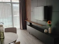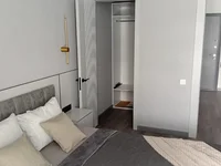 The apartment has two dressing rooms, a functional kitchen with built-in appliances (Hyundai, Electrolux), a spacious bathroom with underfloor heating.