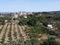 This plot of land for sale in Platanias, Chania, Crete, is located in the village of Modi. It has a total surface of 2531 m² with a high building density of 400 m² for a private residence. It offers easy access by an asphalt road, and views towards the White Mountains as well as the countryside and the surrounding nature. Additionally, due to its size, the plot can be divided into two parts and can accommodate the construction of 800m² building allowence for private residential use. Modi is a serene village with unspoilt natural beauty and amenities such as restaurants and tavernas can be found close in Gerani or Platanias, while the nearest beach is only a 5 minute drive. The connection to Chania by car is only 20 minutes away while Chania airport can be reached in 35 minutes.