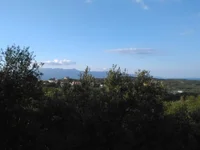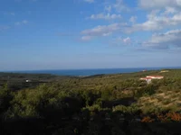 A gradient plot of land for sale in Platanias Chania Crete, of 4735m2 and 200+m2 of building allowance with panoramic sea and countryside views. The plot is set on a quiet area above the village of Kyparissos and has amazing views down to the gulf of Kissamos and the island of Thodorou. Olive trees are situated on the plot and its sloping position guarantees that the views cannot be lost. Kyparissos, with its idyllic tranquility and panoramic views, is a tiny village situated in green rolling hills above Maleme.