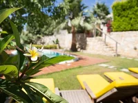 The villas are air-conditioned, have solar panels for hot water, lovely pools, grass lawns, stone boundary walls and visible stone on their exterior walls, outdoor BBQs, mature plants in the garden and most importantly, views of the green nature and surrounding hills.