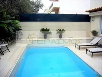 Vari south of Athens Miladeza area, independent maisonette of 207 sq.m. on a plot of 200 sq.m. luxury construction and in very good condition, 3 levels. It consists of a semi-basement with a spacious living room, fireplace, sitting room, dining room, kitchen, 1 bathroom and access to the garden and the pool. Elevated ground floor with large living-dining room, fireplace, 2nd kitchen installation and 1 wc. 1st floor with 3 bedrooms, large wardrobes, 1 bathroom with jacuzzi. On the roof there is a roof garden with a bbq, a sink installation and an unlimited view of the sea. It has 1 parking space, autonomous oil heating, alarm system, security door, electric awnings, air conditioning in all areas, oak floors framed by marble, intercom, 2 storage rooms, 3-way solar, aluminum frames with double glazing and screens. It is close to market, transport and schools