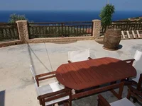 On the stone terrace, there are dining furniture so you can enjoy you meal or your morning coffee, while gazing at the endless blue that your elevated position offers.