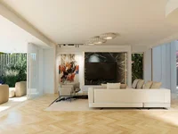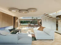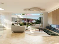 The three-level apartment on the ground floor have a private garden and a swimming pool.
