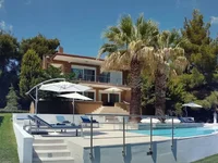 The house is on a plot of 2000sqm full of trees offering breathtaking views across the sea. The house is fully furnished, fully air-conditioned and equipped with everything you might need to make your holiday as relaxing and enjoyable as possible. It can host up to 4 people. It consists of one bedroom with a double bed and a living area with a double sofa bed and a dining area. There is also a separate fully equipped kitchen and a bathroom with a washing machine.