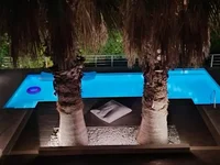 Is situated in one of the most beautiful places in chalkidiki – Kriopigi.It can host 12 people and consists of two elevated ground floors and a semi basement. The ground floor features a large and comfortable living room with a fantastic fire place, an open plan large fully equipped kitchen. Two bedrooms of 15square meters each, one bedroom has one double bed and the other with two single beds. The first floor has one master bedroom of 40 square meters, with a living room and a fire place. Two other bedrooms of 15square meters each, one bedroom has one double bed and the other with two single beds. There are 2 bathrooms and a 50 sqm balcony. On the semi basement is located a play room together with a large storage area. The exterior of the house is amazing with grass, palm trees, pine trees, olive trees and a fully equipped large barbeque kiosk.